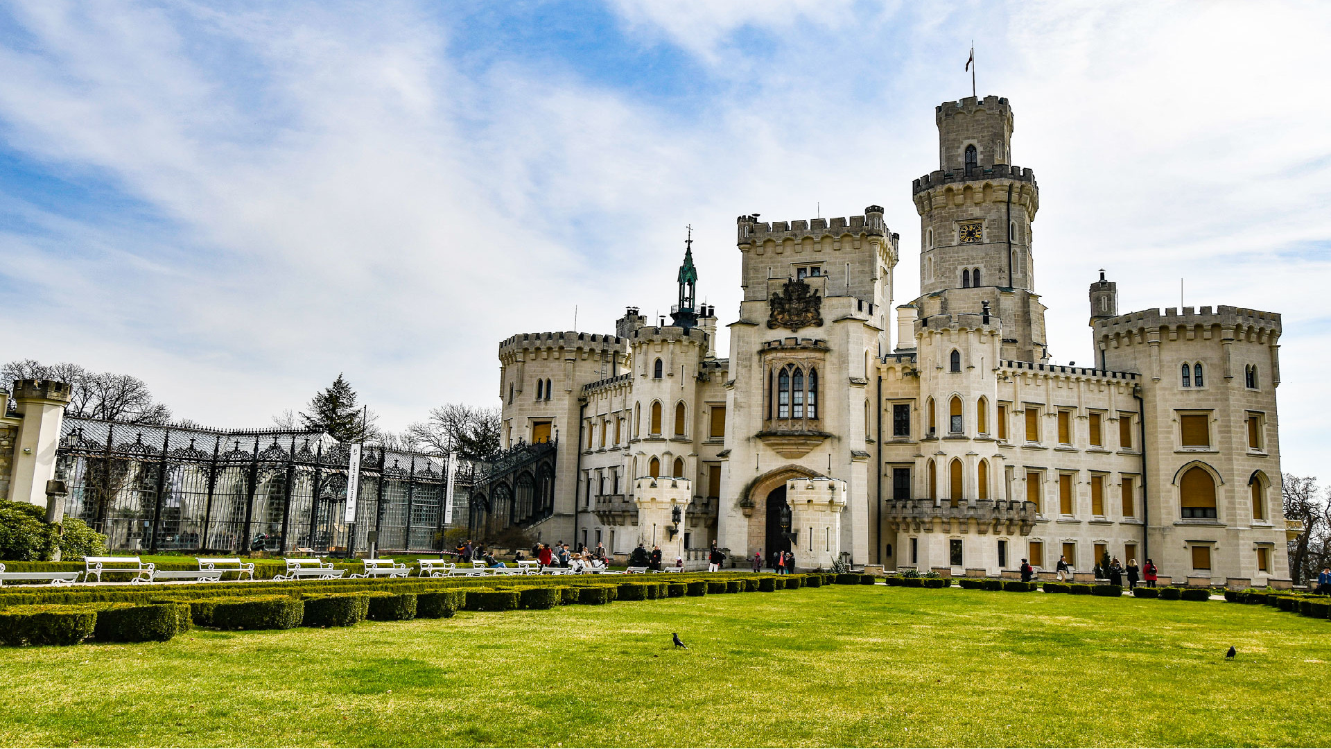 Luego, a unos 10 kilómetros de České Budějovice, se encuentra el Palacio de Hluboká, considerado el más bonito de Chequia, que dispone de 140 estancias y 11 torres. Los visitantes pueden optar por varios recorridos por las cámaras privadas y las lujosas salas de representación con sus paredes chapadas y talladas, los techos artesonados, elegantes muebles, arañas de cristal y grandes colecciones de cuadros, objetos de plata, porcelanas y gobelinos.