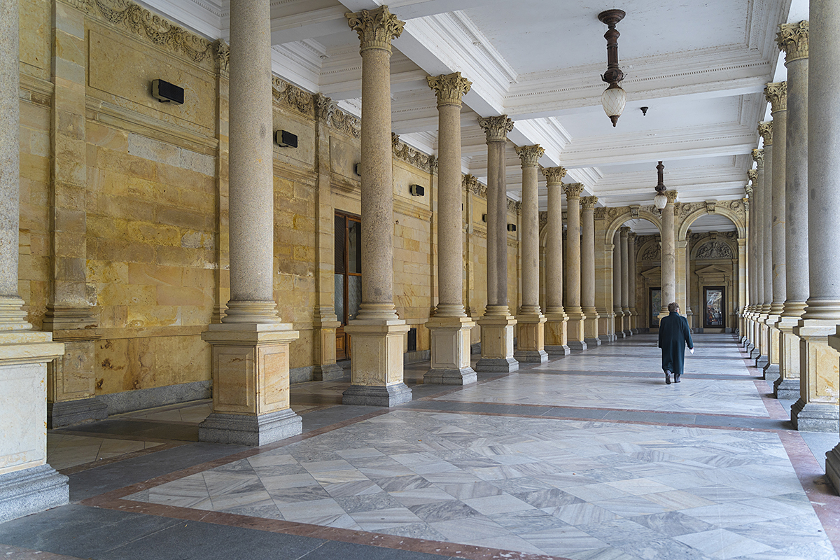 Hoy la localidad sigue volcada en su papel de ciudad balneario gracias a las quince fuentes de aguas termales que surgen en distintos puntos de la población. Cinco de ellas, en pleno centro, se cubrieron a finales del siglo XIX con una bella creación arquitectónica, la columnata Mlýnská kolonáda (Columnata del Molino), un edificio de estilo neoclásico diseñado por el arquitecto Josef Zítek. Allí, entre sobrias y elegantes columnas, puede verse día y noche un continuo peregrinar de vecinos y turistas que, provistos de tazas y botellas, recogen el agua medicinal, que en este caso se bebe, pues es muy apreciada para tratar dolencias digestivas.