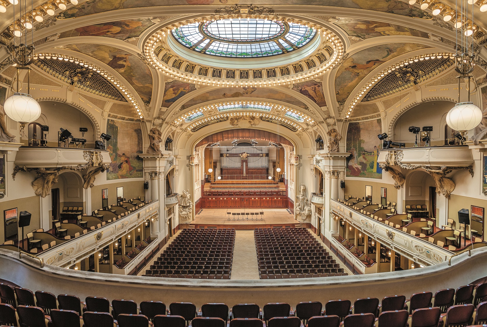 Inmediatamente después hay que acercarse a la “Casa Municipal” (Obecní dům)   uno de los edificios modernistas más carismáticos de la capital checa, diseñado entre 1905 y 1911 por Antonín Balšánek y Osvald Polívka. En su interior se pueden ver obras de grandes  artistas  de principios del siglo XX incluido Mucha que realizó en 1911 los murales que decoran en salón principal. Se trata de murales de enormes dimensiones en torno a la Concordia Eslava , ensalzando los valores nacionalistas que desembocarían en la independencia de Checoslovaquia, unos años más tarde.