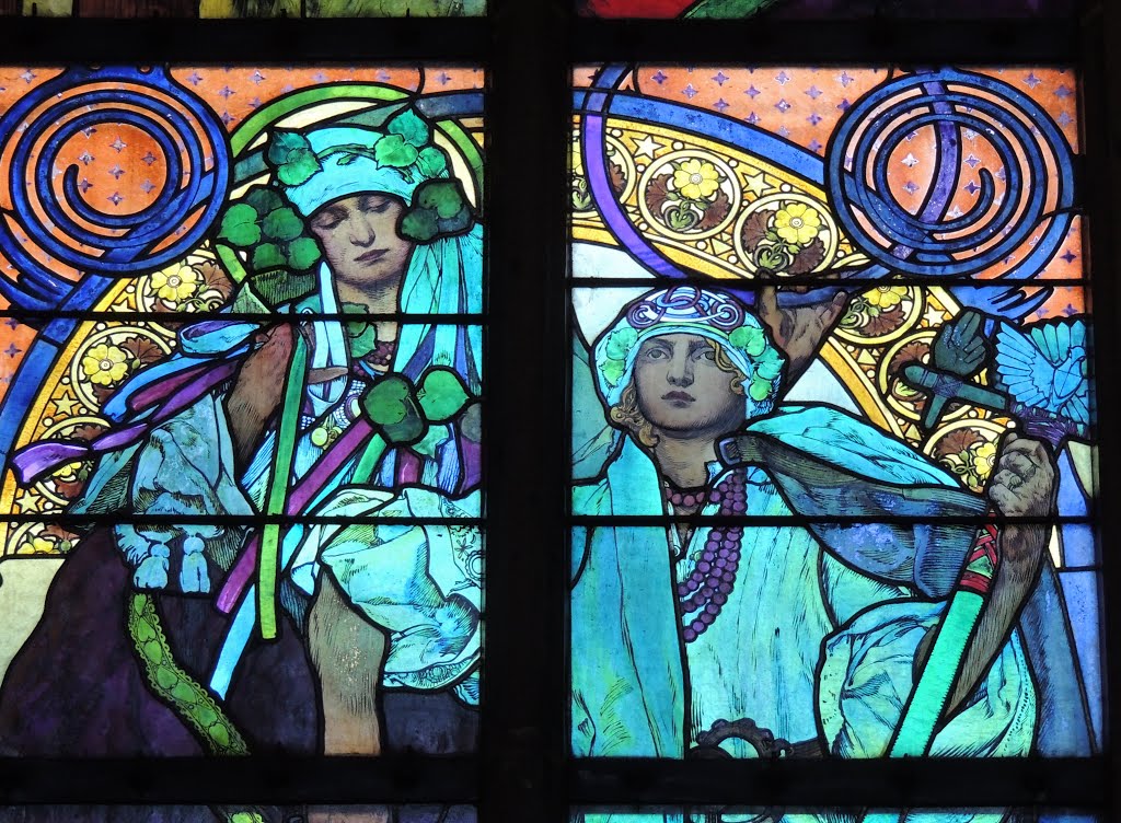 La tercera parada en este circuito por la Praga de Mucha, hay que hacerla en la Catedral de San Vito  donde se puede ver la vidriera original que realizó Mucha hacia 1930, utilizando como tema principal la vida de San Wenceslao.